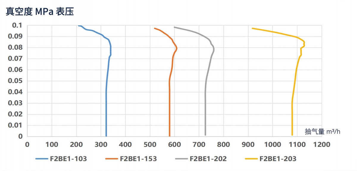 可滿足246~1380m3/h的中高抽氣量區間,其限度真空度也更高。